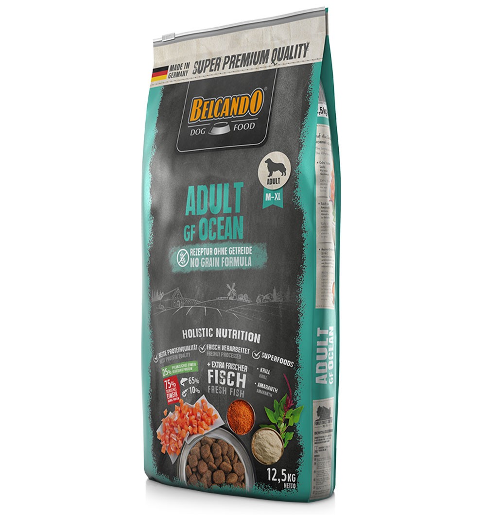 BELCANDO Adult GF Ocean retseptis on teraviljad asendatud kvaliteetse amarandiga. Amarant on üks vanimaid põllukultuure ja seda hinnati juba asteekide seas jõudu andvate omaduste tõttu. Koos Antarktika krilliga moodustab see eriti tasakaalustatud retsepti. Suurema valgu- ja rasvasisalduse tõttu sobib BELCANDO Adult GF Ocean eriti hästi aktiivsetele koertele.