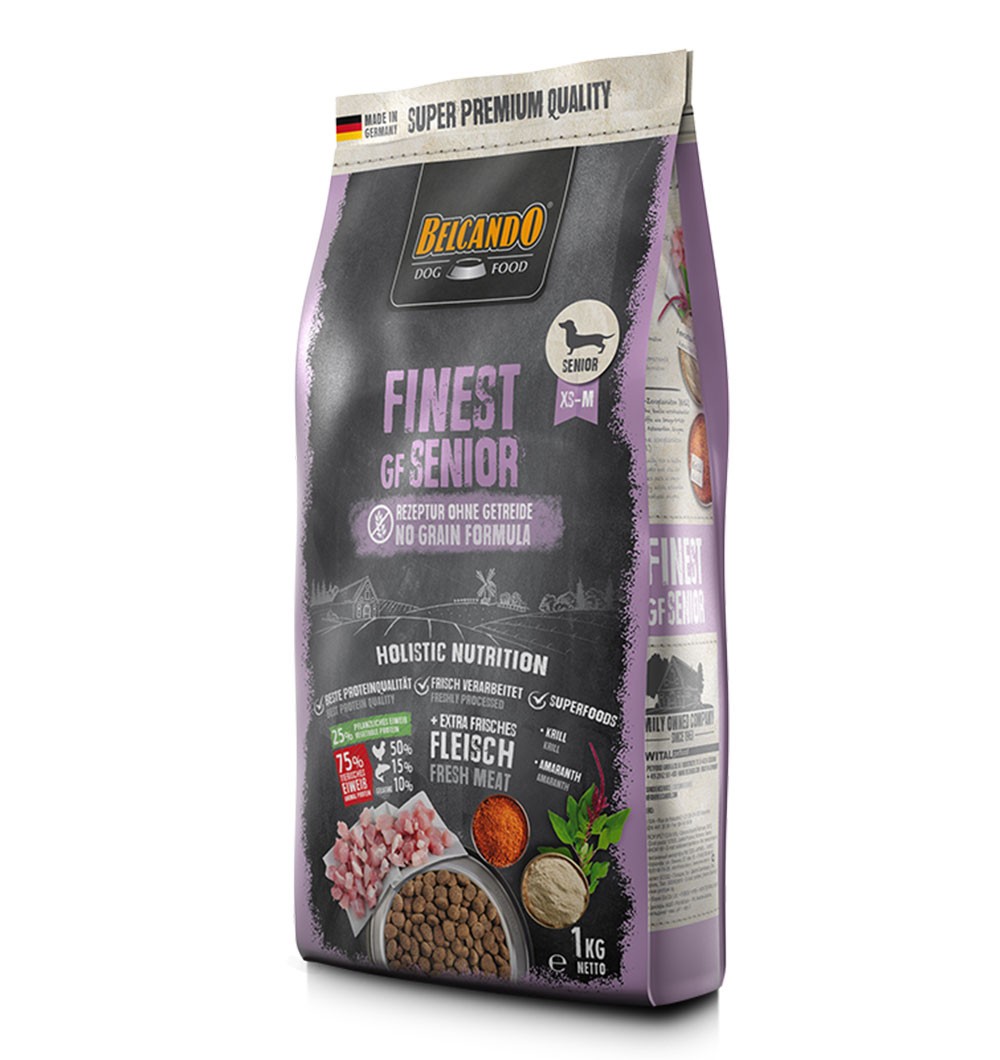 BELCANDO Finest GF Senior on sobiv kuivtoit vanematele koertele, sh teravilja suhtes tundlikele koertele.