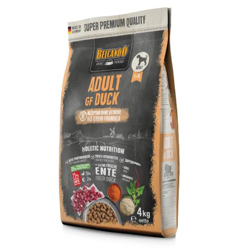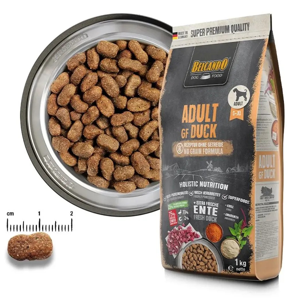 Kõik on hästi, kui menüüs on pardiliha – eriti kui kostitad oma koera toiduga BELCANDO Adult GF Duck! See teraviljavaba toit ühendab värske pardiliha supertoitudega ja pakub ainulaadset ja kergesti seeditavat maitseelamust. Lisandiks on krill, mis on rikkalik oomega-3 allikas, ja amarant – kvaliteetne alternatiiv teraviljale.