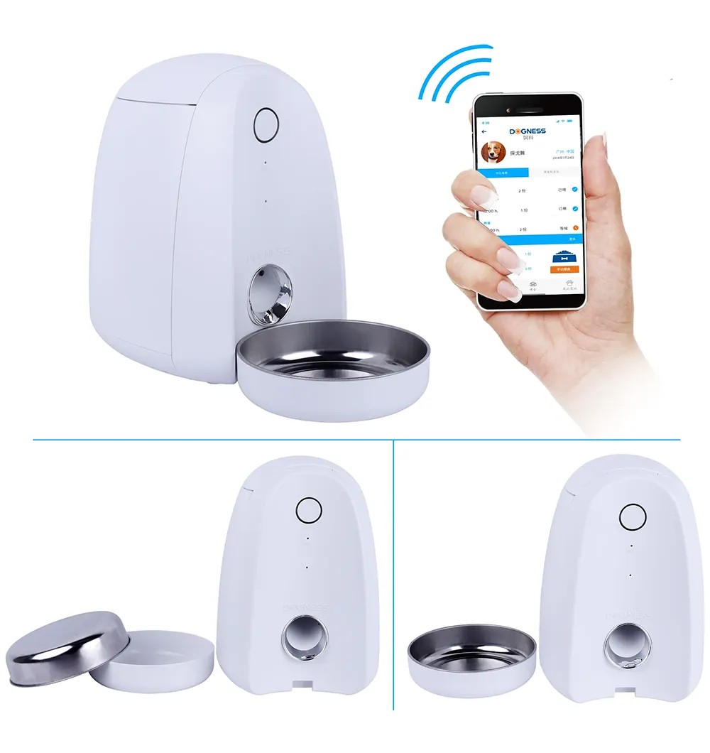 - Automaatne lemmikloomasöötja on juhitav Dognessi nutitelefoni rakenduse kaudu.