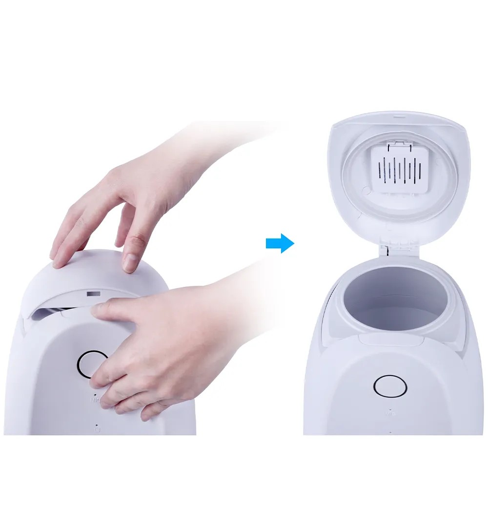 - Sisseehitatud kuivtoidu konteineri kaane silikoonist tihend hoiab toidu kuiva ja värskena. Toiduväljundi ava tihendiga sulgur hoiab eemal putukad ja niiskuse.