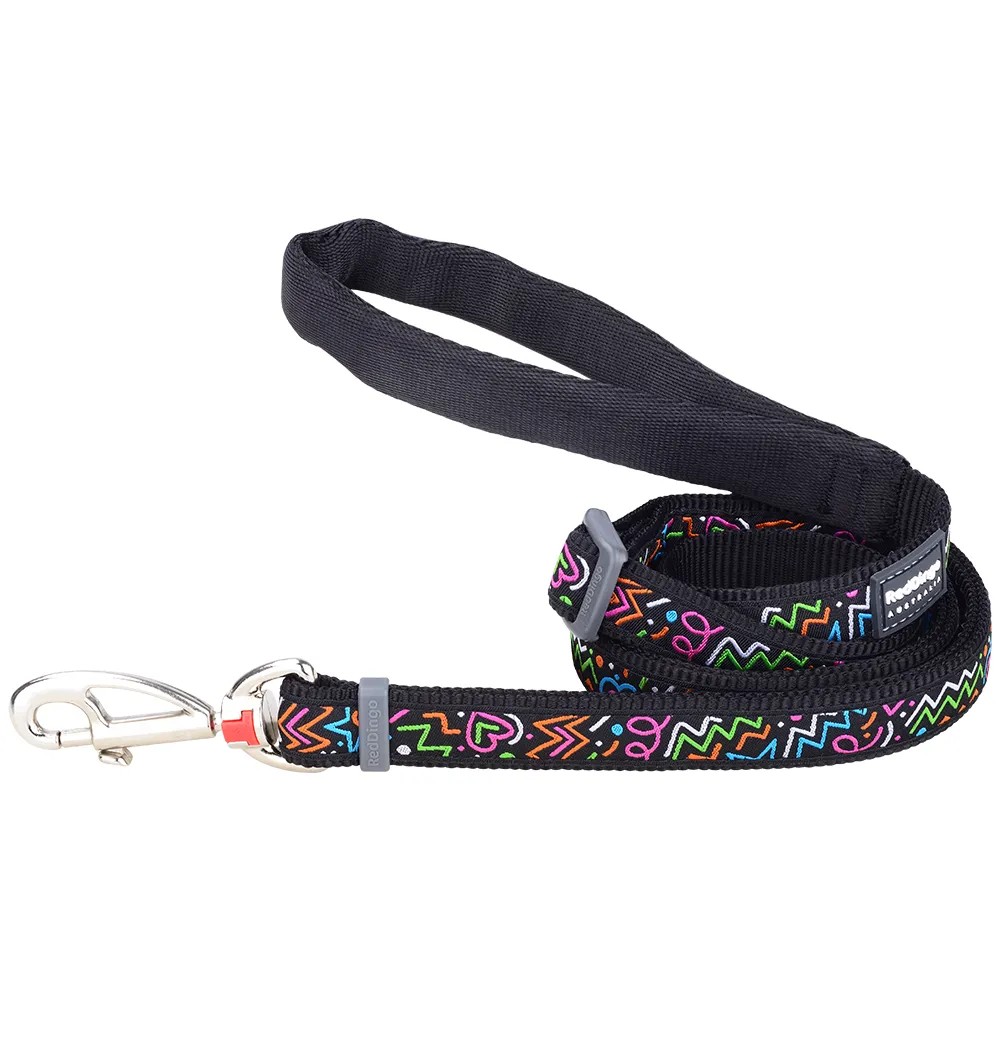 Jalutusrihm koerale Red Dingo, 15mm x 1.8m, Squiggles Black