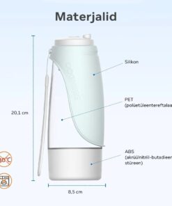 • Joogipudeli põhja all on lahtikeeratav topsik, milles saab hoida näiteks koera maiuseid või kakakotte.