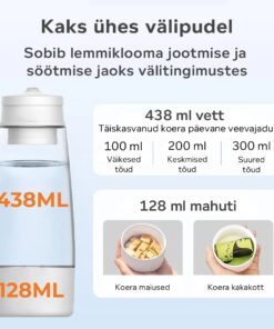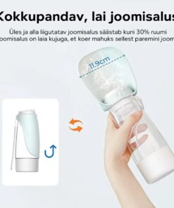 • Koera joogipudel on disainitud ruumisäästlikult – silikoonist joogialus on lemmikloomale vee pakkumiseks üles-tõstetav.