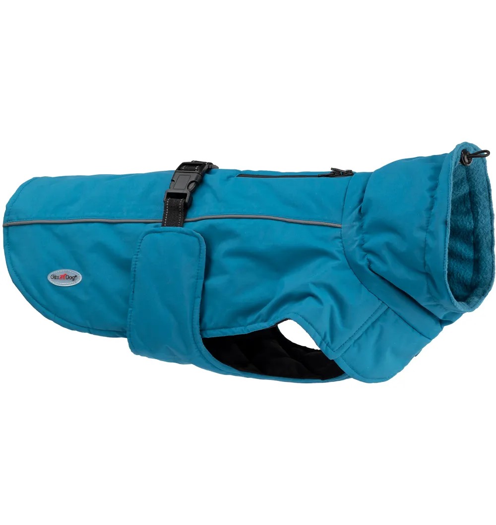 • Nöörkinnitusega kõrge kaelus, mis hoiab koera kaitstuna nii vihma, lume kui külma eest.