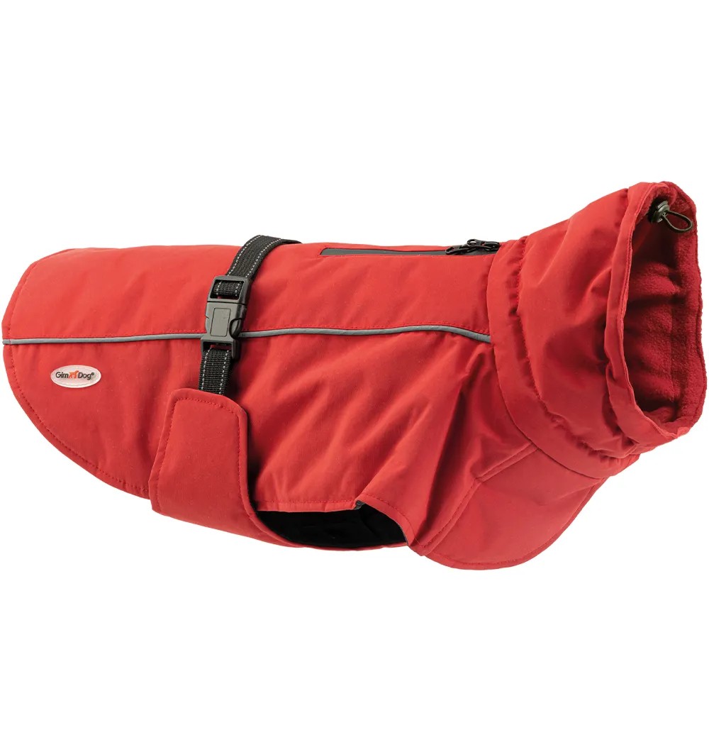 - Nöörkinnitusega kõrge kaelus, mis hoiab koera kaitstuna nii vihma, lume kui külma eest.