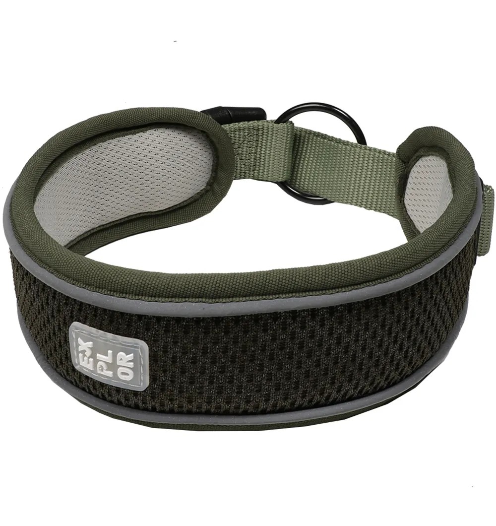 EXPLOR Ultimate Fit Control sarja koera kaelarihm on pehme, mugav ja lai. Valmistatud hästihingavast, elastsest kangast. Kaelarihma lai pind ja pikkuse reguleeritavus tagavad optimaalse survejaotuse koera kaela ümber juhul kui koer tõmbab või kui koera on vaja kontrollida. Klõpspannal pannakse enne sulgemist läbi metallrõngast, mistõttu pandlale avaldub vähem survet, kui metallrõnrõngast tõmmatakse. See teeb EXPLOR Ultimate Fit Control kaelarihma kasutamise eriti turvaliseks. Materjalid on hoolikalt valitud. Kaelarihm kuivab kiiresti, on vastupidav ja tänu helkurpaelale ümber kaelarihma tagab hea nähtavuse liikluses. Kaelarihma siseküljele saab kirjutada telefoninubri, samast on leitavad vajalikud hooldusjuhised.