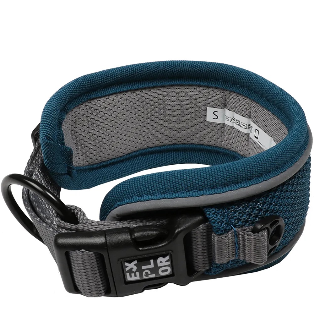 EXPLOR Ultimate Fit Control sarja koera kaelarihm on pehme, mugav ja lai. Valmistatud hästihingavast, elastsest kangast. Kaelarihma lai pind ja pikkuse reguleeritavus tagavad optimaalse survejaotuse koera kaela ümber juhul kui koer tõmbab või kui koera on vaja kontrollida. Klõpspannal pannakse enne sulgemist läbi metallrõngast, mistõttu pandlale avaldub vähem survet, kui metallrõnrõngast tõmmatakse. See teeb EXPLOR Ultimate Fit Control kaelarihma kasutamise eriti turvaliseks. Materjalid on hoolikalt valitud. Kaelarihm kuivab kiiresti, on vastupidav ja tänu helkurpaelale ümber kaelarihma tagab hea nähtavuse liikluses. Kaelarihma siseküljele saab kirjutada telefoninubri, samast on leitavad vajalikud hooldusjuhised.