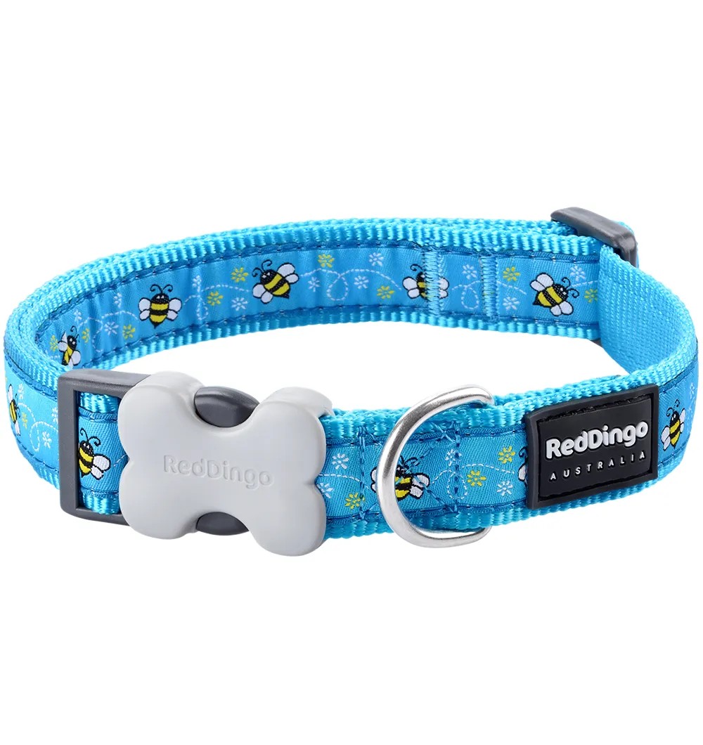 Kaelarihm koerale Red Dingo 12 mm , Bumble Bee Turquoise