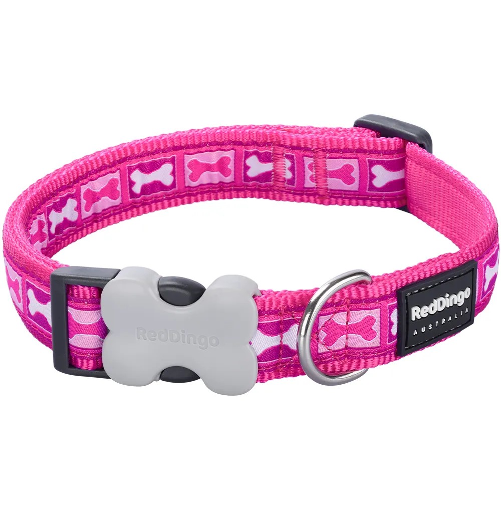 Kaelarihm koerale Red Dingo 15 mm, Bone Yard Hot Pink