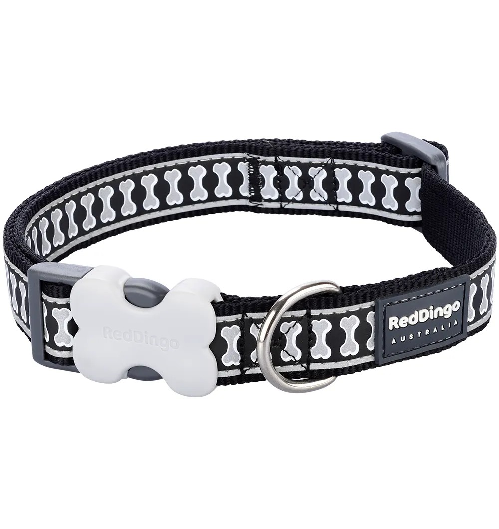 Kaelarihm koerale Red Dingo Reflective 20 mm, Bones Black