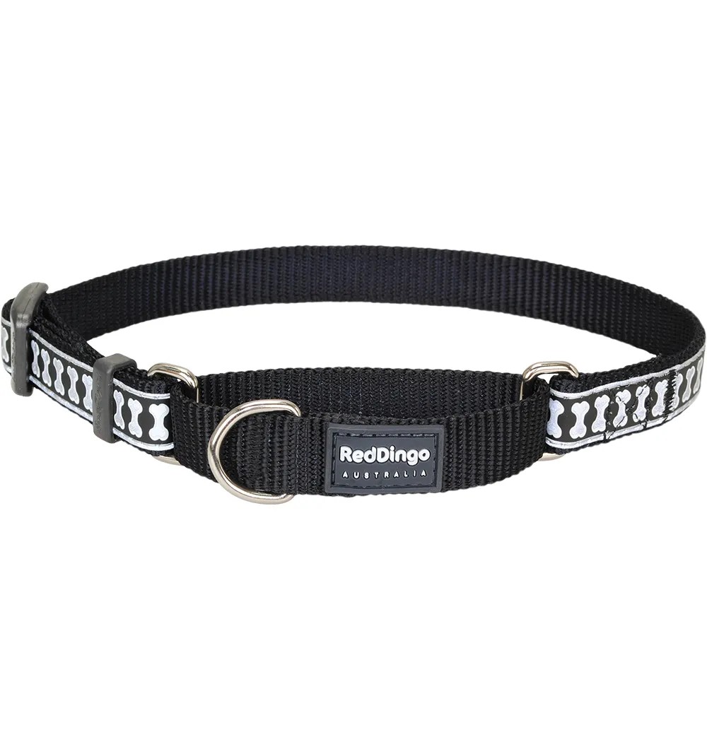 Kaelarihm koerale | Reflective | poolpoov, helkuritega | 20 mm x 32–47 cm | Bones Black | Red Dingo