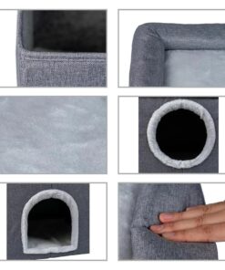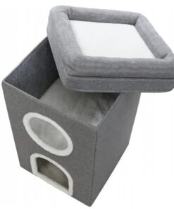 Kassi maja, millel on kaks koobast/peidupaika ning lisaks pehme magamisase majakese peal.