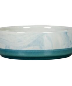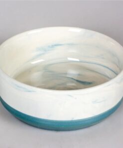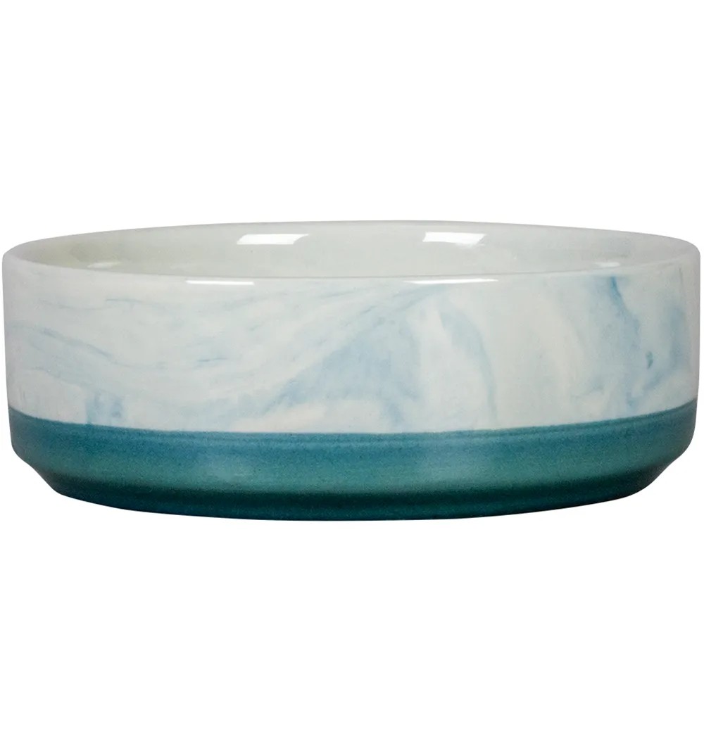 Marmormustriga keraamiline koera ja kassi söögikauss.