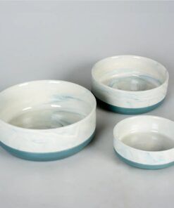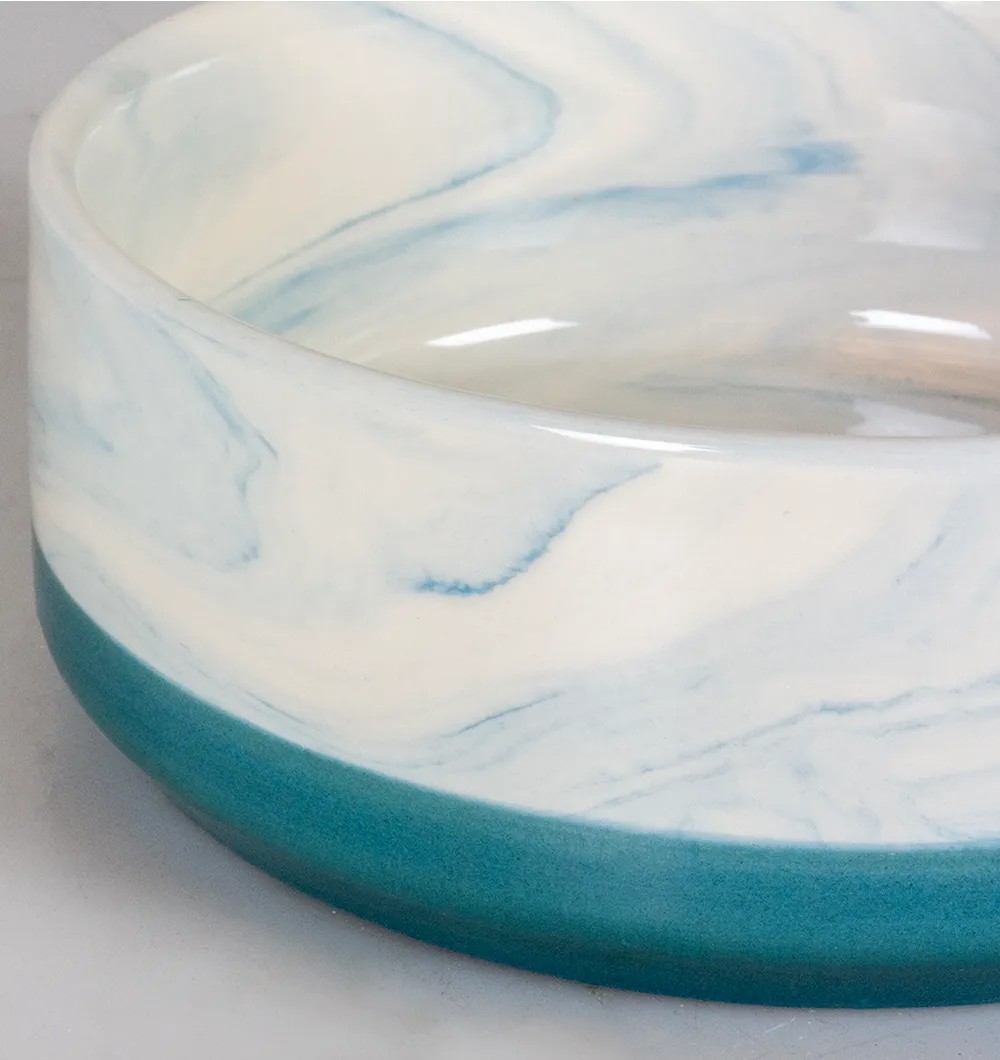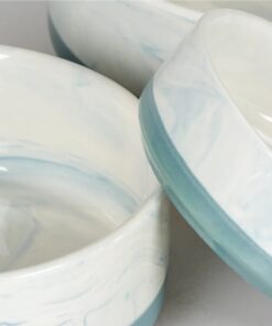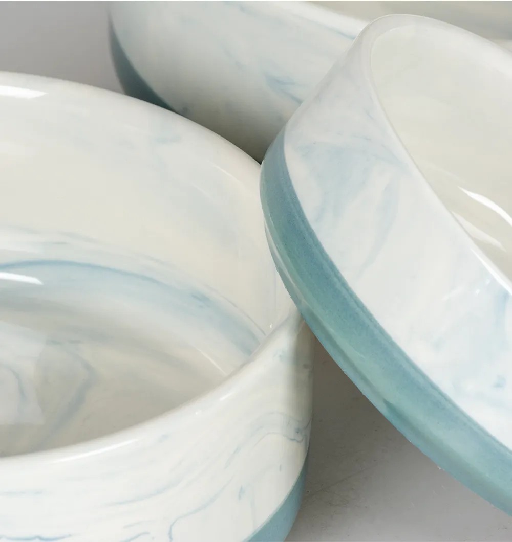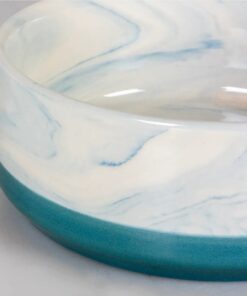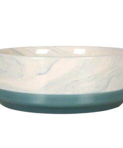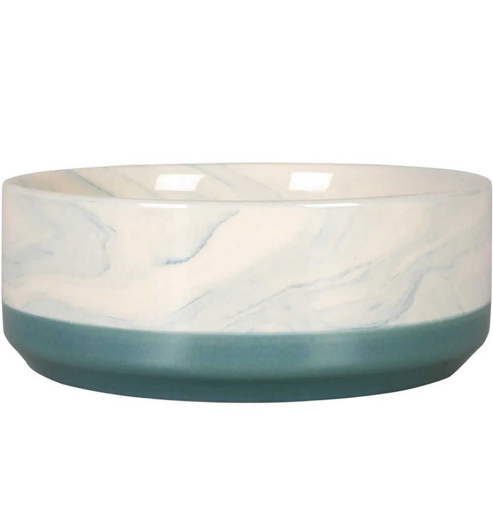 Marmormustriga keraamiline koera ja kassi söögikauss.