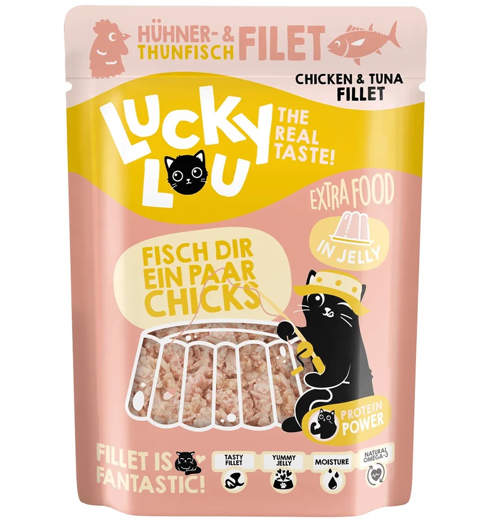 Konserv kassile Lucky Lou tuunikala ja kanafilee tarrendis, 70g kotikeses