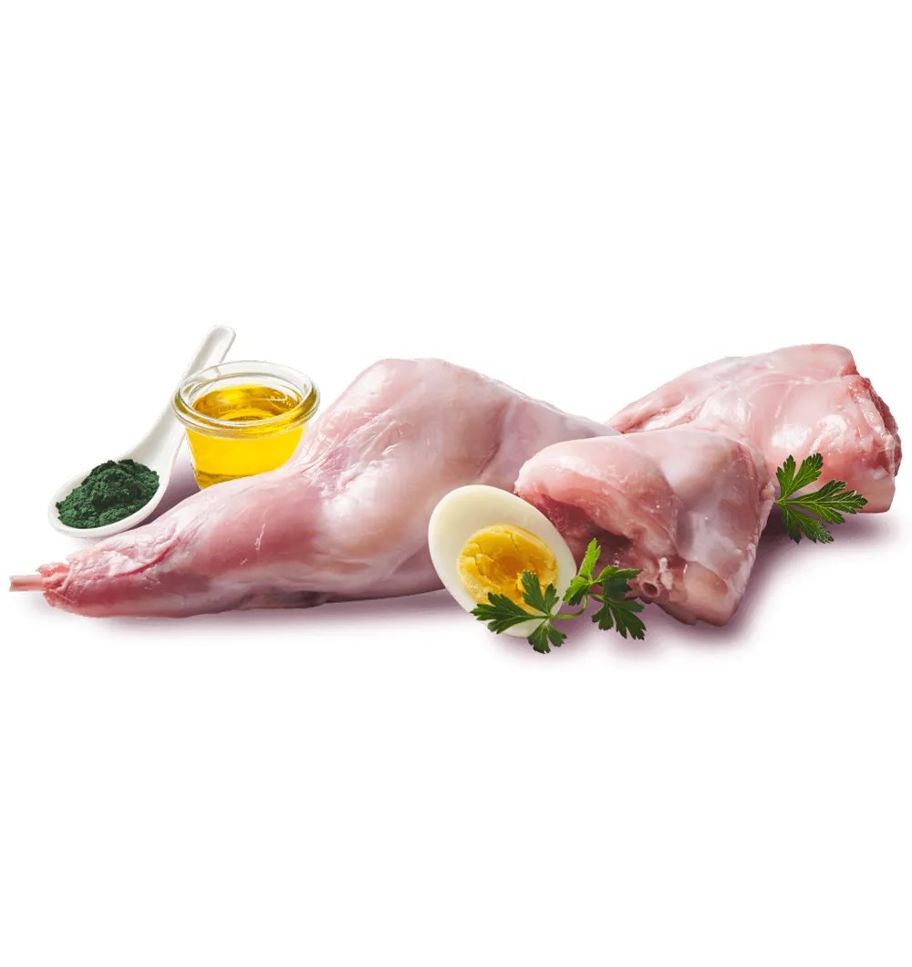 Liha ja siseorganid 70% (60% süda, liha, kopsud, maks; 10% jäneseliha), lihapuljong 28.2%, mineraalained 1%, lõheõli 0.4%, täismunad 0.2%, Uus-Meremaa rohekarbid 0.1%, spiruliina 0.1%.