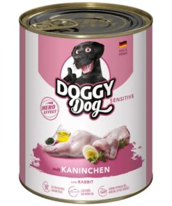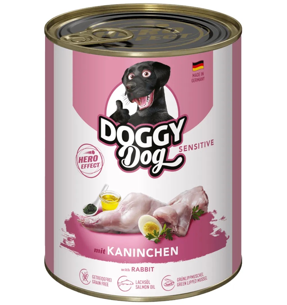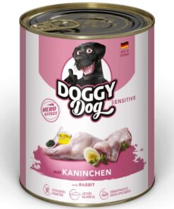 DOGGY Dog Sensitiv Rabbit konservtoit on hea valik tundliku kõhuga koertele tänu eriti väherasvasele ja kergesti seeditavale jäneselihale. Lisaks paljudele valkudele varustab see teie lemmiklooma ka oluliste mineraalainetega nagu raud, B-vitamiinide ja aminohapetega.