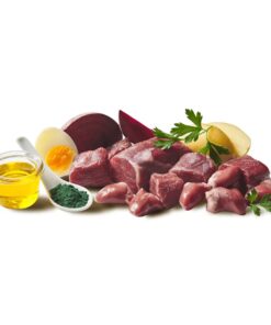 Liha ja siseorganid 60% (50% süda, liha, kopsud, maks; 5% metssealiha; 5% kodulinnusüdamed), lihapuljong 28.2%, kartul 5%, peet 5%, mineraalained 1%, lõheõli 0.4%, täismunad 0.2%, Uus-Meremaa rohekarbid 0.1%, spiruliina 0.1%.