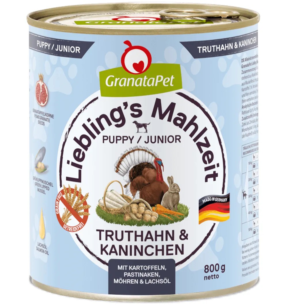 Liharohke ja hõrgu koostisega GranataPet Liebling´s Mahlzeit konserv on ideaalne tasakaalustatud täistoit kutsikale. See teraviljavaba gurmeetoit rõõmustab igat kutsikat..