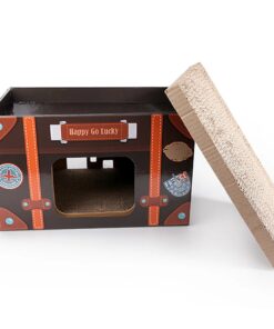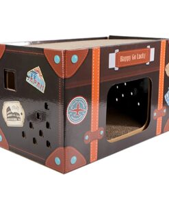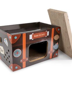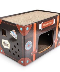 Kartongist kahekorruseline vintage-stiilis kassi kraapimispuu – kraapimisalus, kuhu kass saab sisse pugeda, et segamatult puhata ja mängida.
