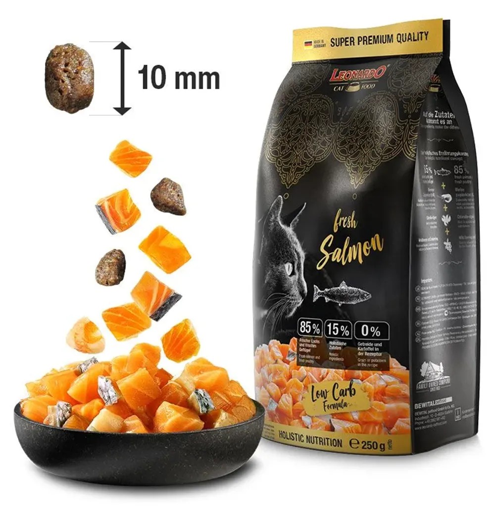 Kassi tasakaalustatud toitumine on väga oluline, seetõttu on LEONARDO toitudes pööratud erilist tähelepanu erinevate koostisosade mitmekülgsusele. Eesmärgiks on võetud, et LEONARDO kuivtoitudes sisalduks vähemalt kaks loomset valguallikat ning et ka taimsete koostisosade sortiment oleks retseptides rikkalikult esindatud, sealhulgas tšiiaseemned, külmpressitud viinamarjaseemne jahu, amarant jm. Need koostisosad tagavad, et Teie kassi toitumine oleks täiuslik, sisaldades kõiki olulisi toitaineid, mis kindlustavad kassi hea tervise, vitaalsuse ja elujõu.