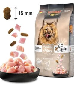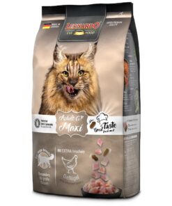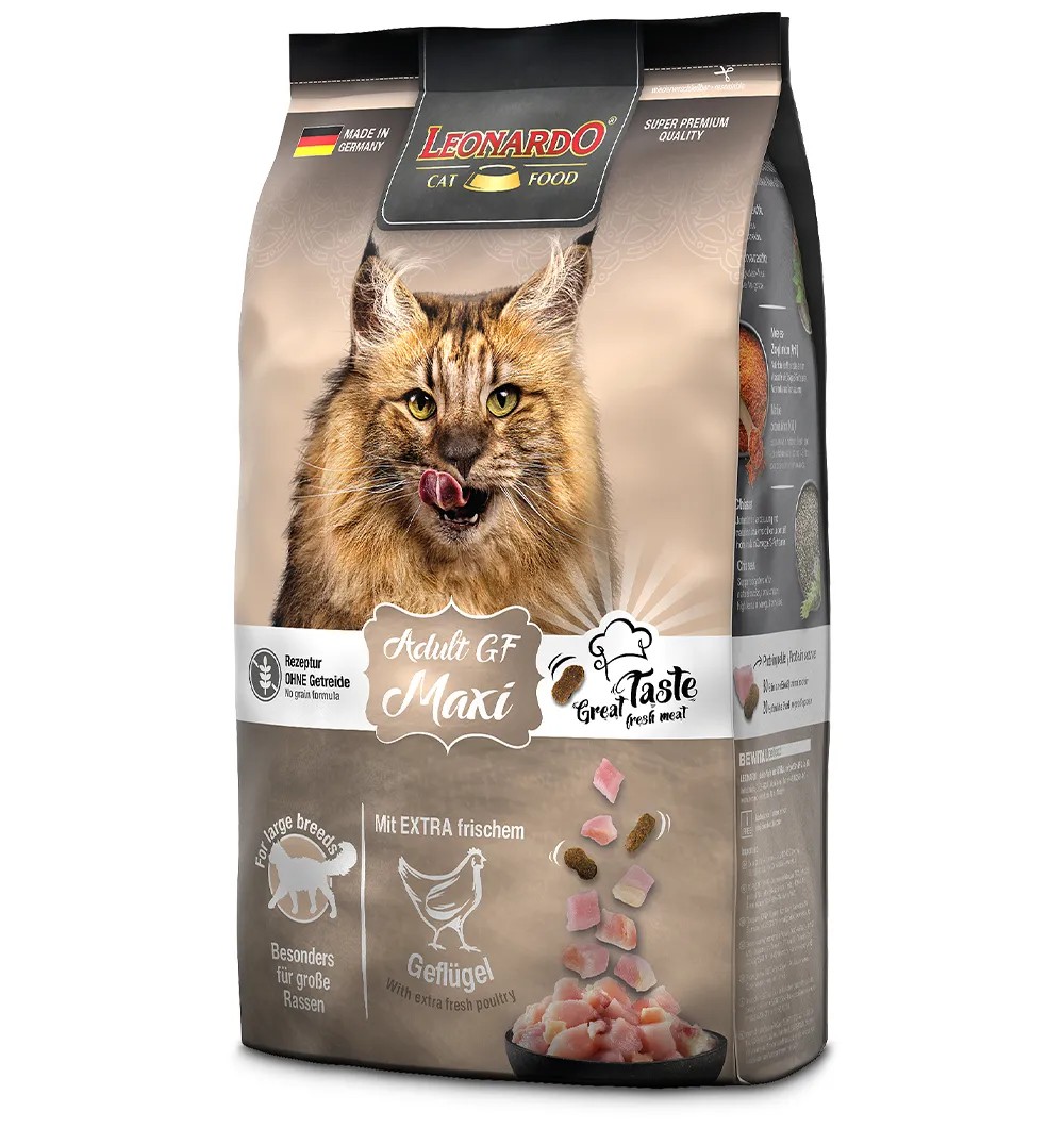 Suured kassitõud, nagu Norra metskass ja Maine Coon, vajavad erilist toitu. LEONARDO Adult MAXI kuivtoidu erilised suured graanulid vajavad närimiseks rohkem aega, mis on kasulik kassi hammaste tervisele, stimuleerib süljevoolu.