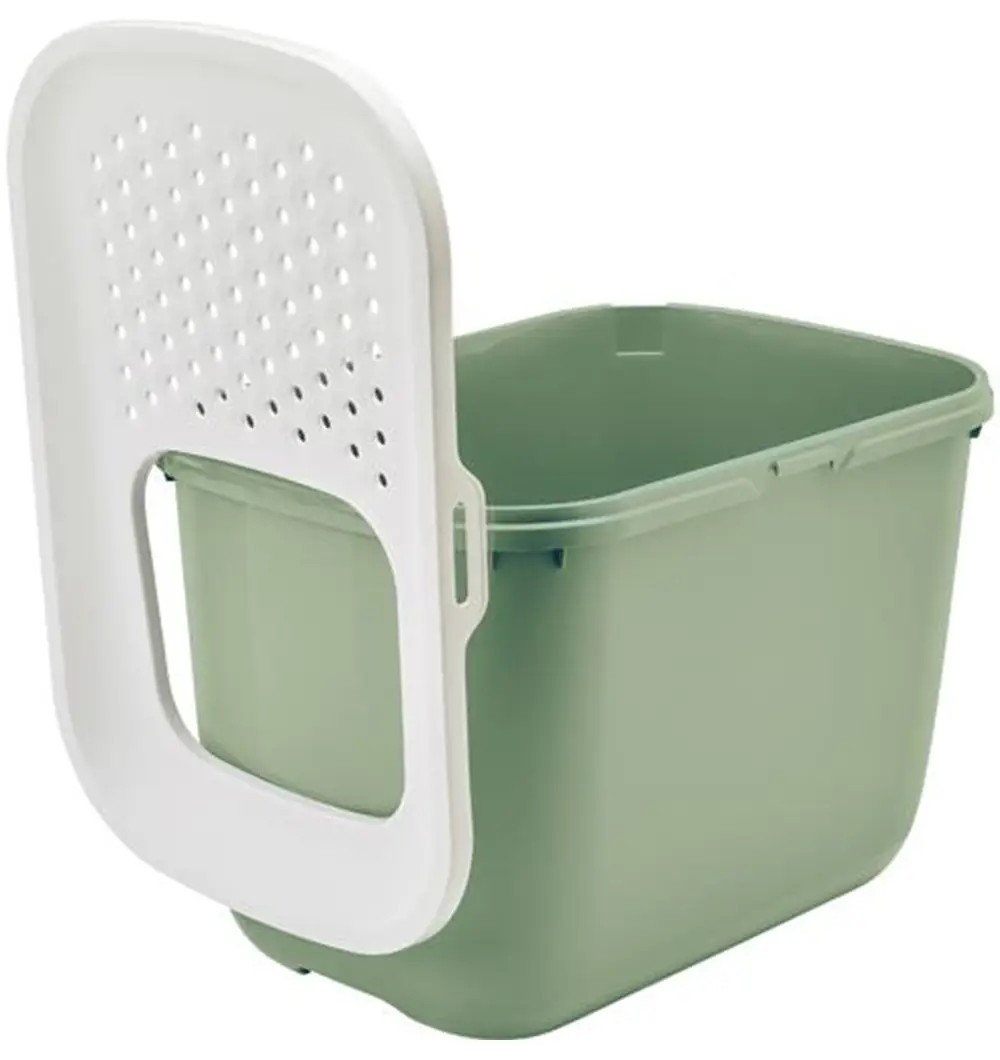 Suur ava kaanes võimaldab kassile vaba liikumise liivakasti sisse ja sealt välja. Hop In liivakasti igapäevane puhastamine on lihtne. Pealmise kaane saab eemaldada ja tühjendamise ajaks riputada liivaksti küljele.