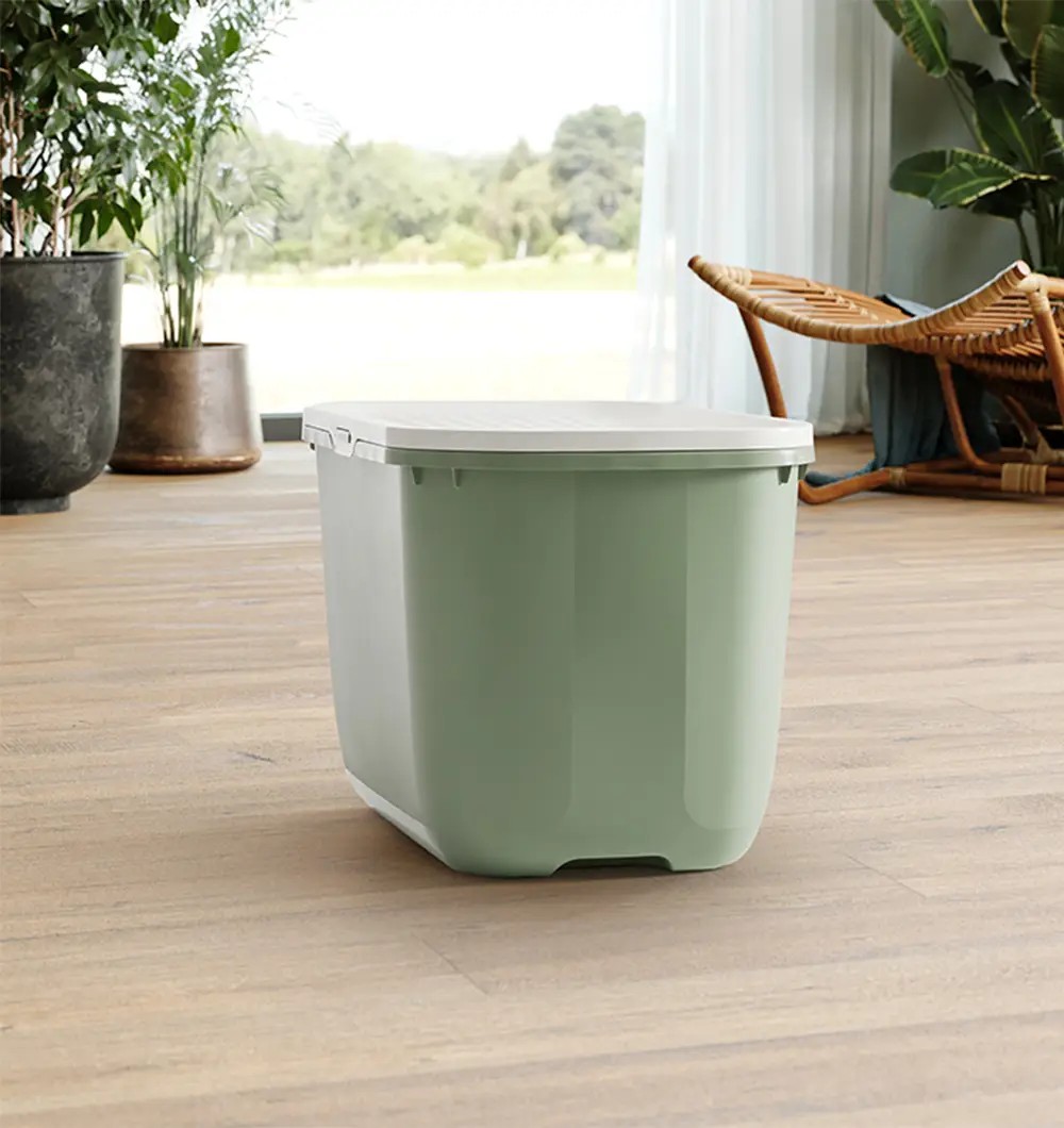 Hop In on modernne kõrge liivakast, kuhu kass saab ülevalt sisse hüpata.