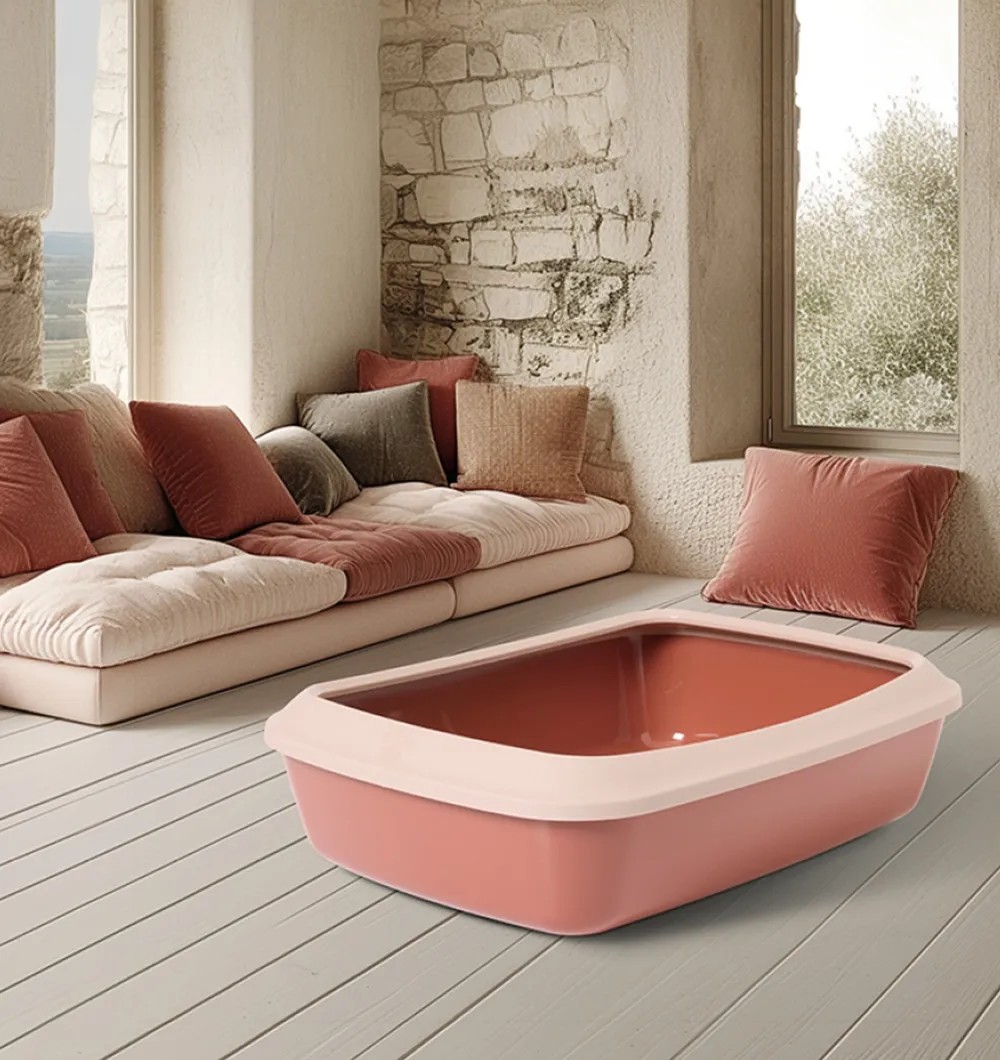 - Modernse ja praktilise disainiga lahtine kassi liivakast, äravõetava äärisega.