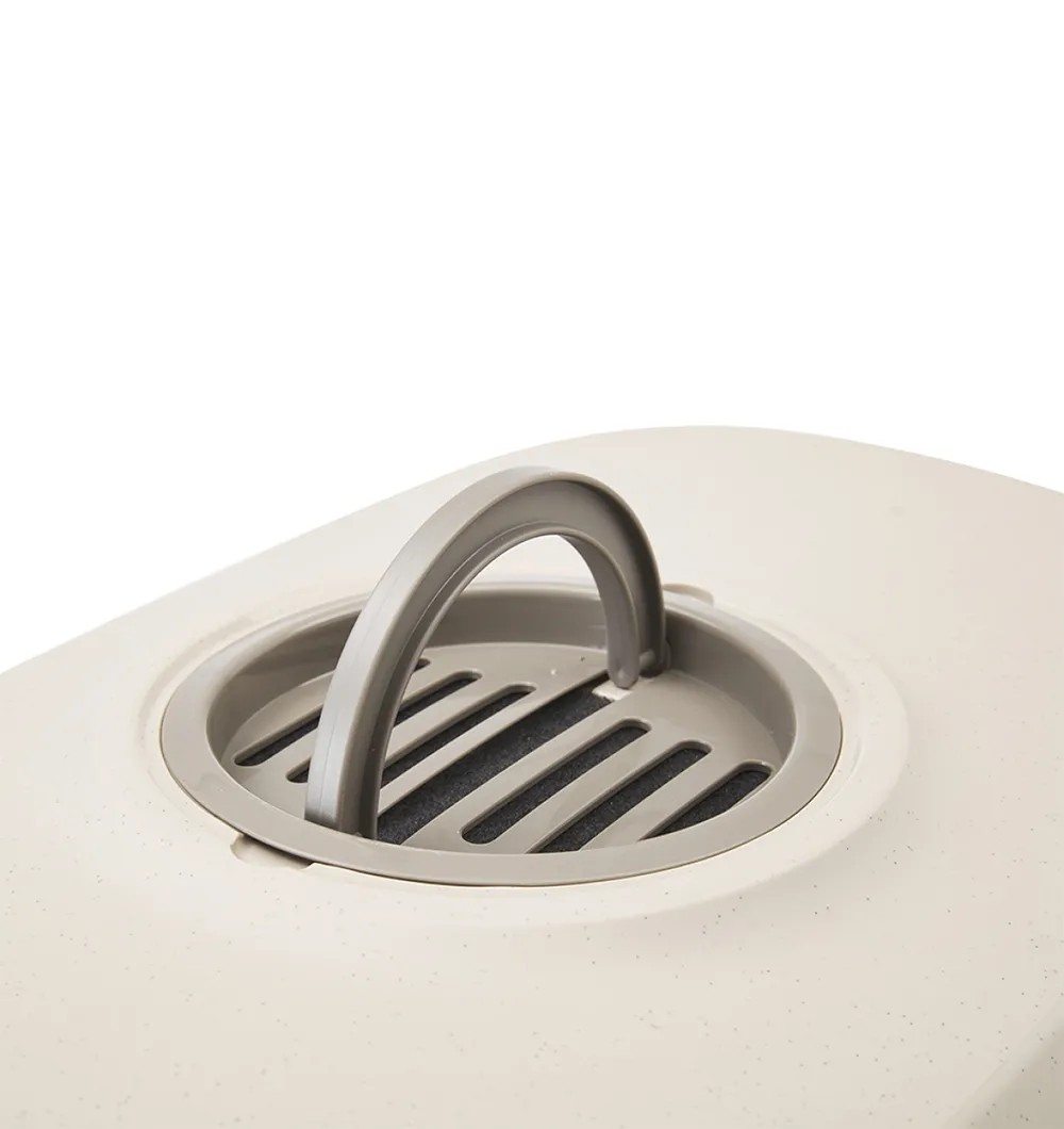 Kassi liivakastil on vahetatav aktiivsöefilter, mis imab endasse ebameeldiva lõhna, käepide ja läbipaistev edasi-tagasi liikuv uks.
