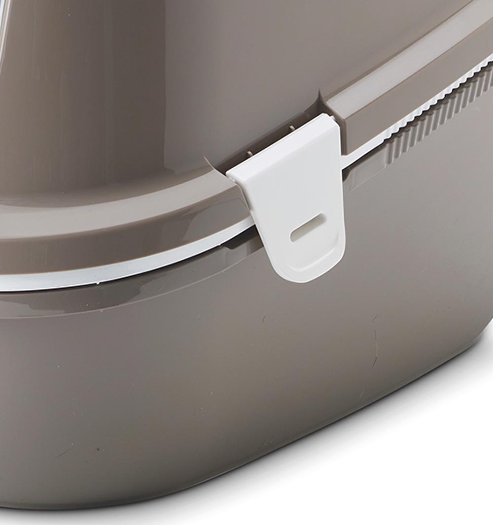 Liivakastil on vahetatav aktiivsöefilter, mis imab endasse ebameeldiva lõhna, sisseehitatud käepide ja läbipaistev edasi-tagasi liikuv uks.