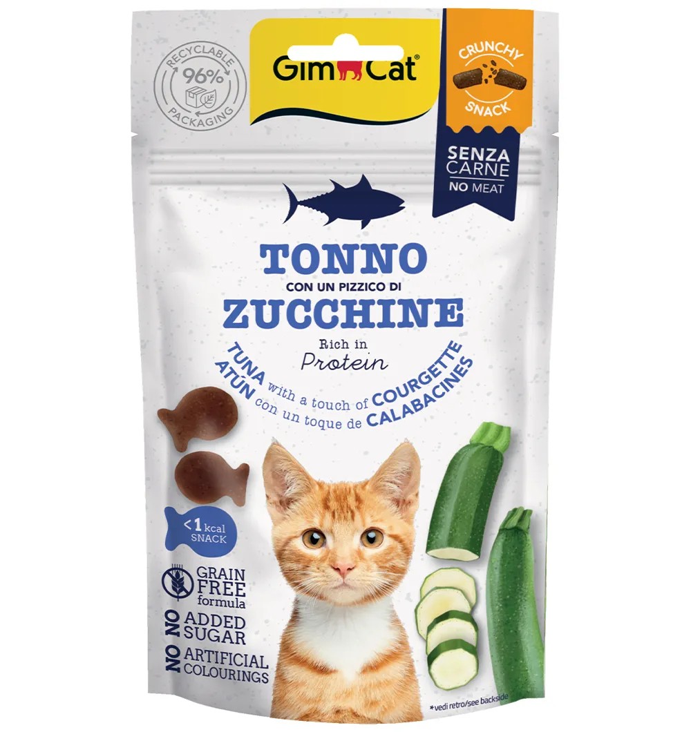 GimCat Crunchy Snacks maiused on vastupandamatult maitsev kombinatsioon tuunikalast ja suvikõrvitsast!