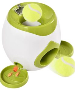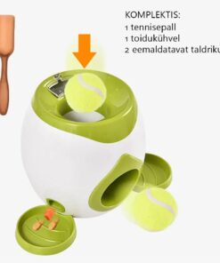 Täida mänguasi kuivtoidu graanulitega või meelepäraste maiustega. Koer saab maiuse preemiaks, kui ta palli mänguasja avasse sisse paneb. Pall veereb välja, et koer saaks sellele järele minna ja ära tuua.
