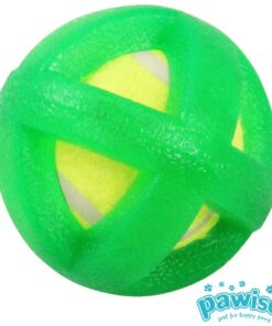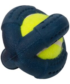 - Ebaühtlane väliskuju ja tennisepall selle sees annavad pallile ettearvamatu põrkesuuna, mis innustab koera mängima.