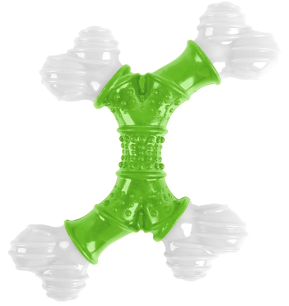 - Ainulaadne X-kujuline disain võimaldab koeral mänguasja mugavalt haarata ja närida erinevatest nurkadest.