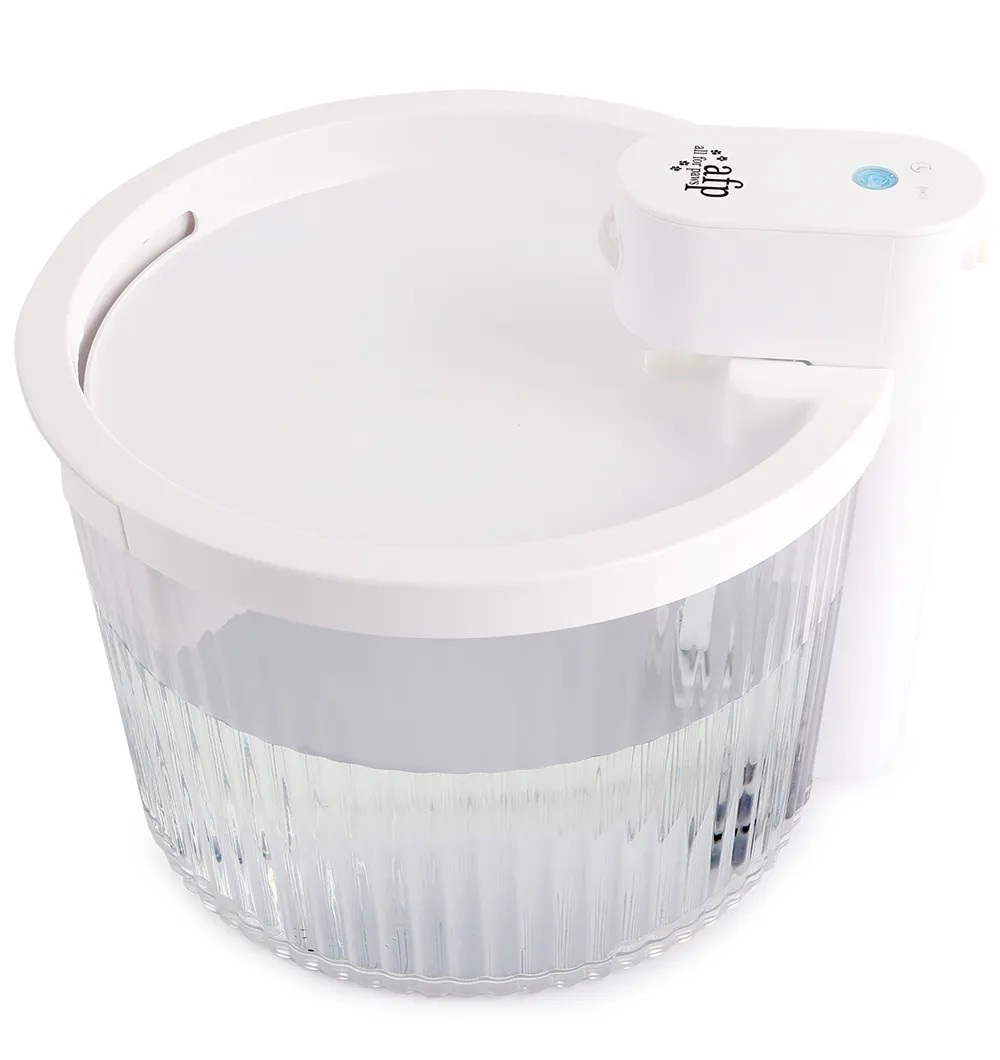 - Kassi purskkaev töötab ilma juhtmeta pumbaga. Kuna seadmel puudub elektrijuhe, saab purskkaevu paigutada mugavalt sobivasse kohta, ilma et peaks arvestama elektrikontakti asukohaga.