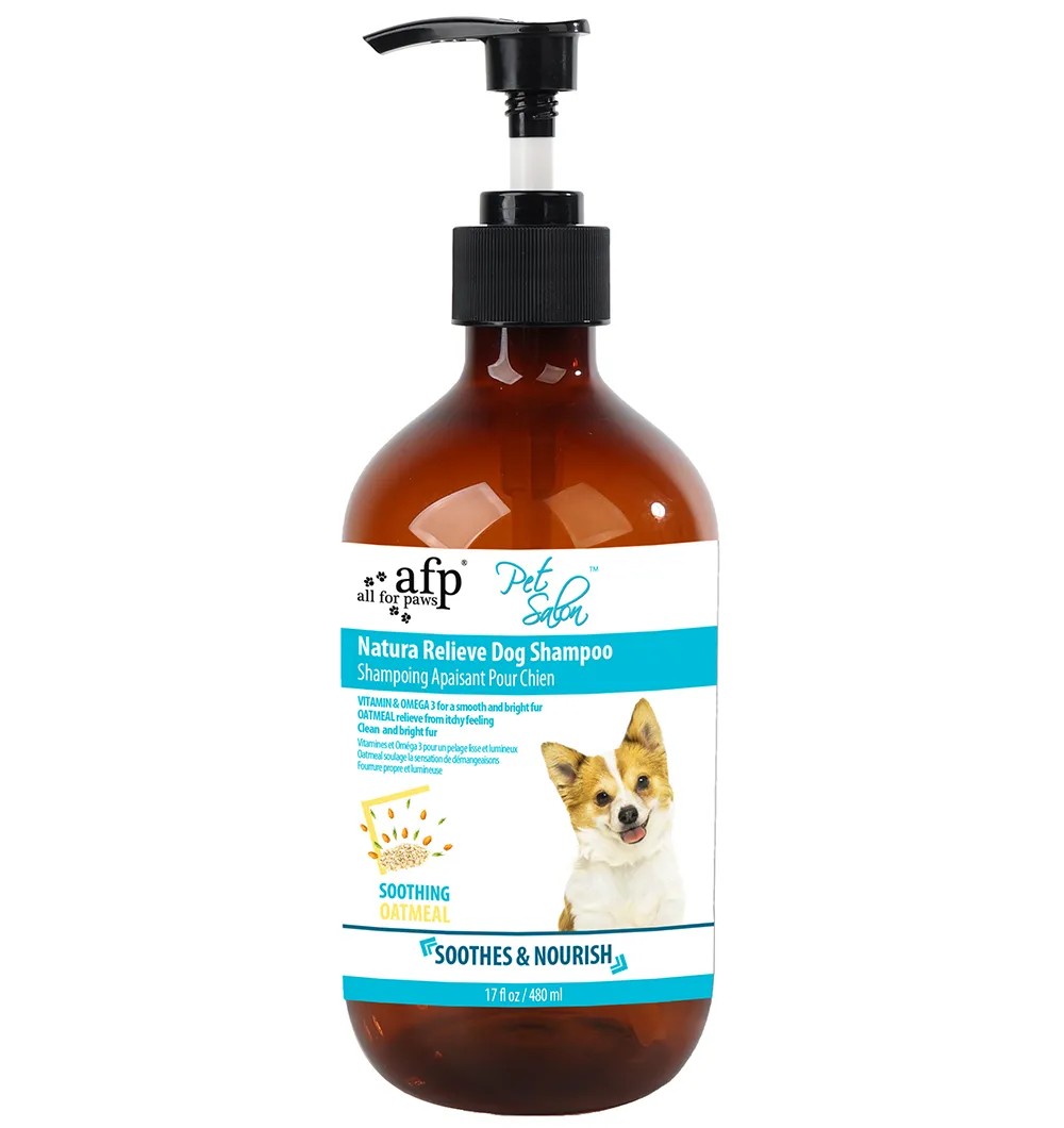 Pet Salon Natural Relieve koera šampoon, millel on looduslikult nahka rahustav ja sügelust leevendav toime.