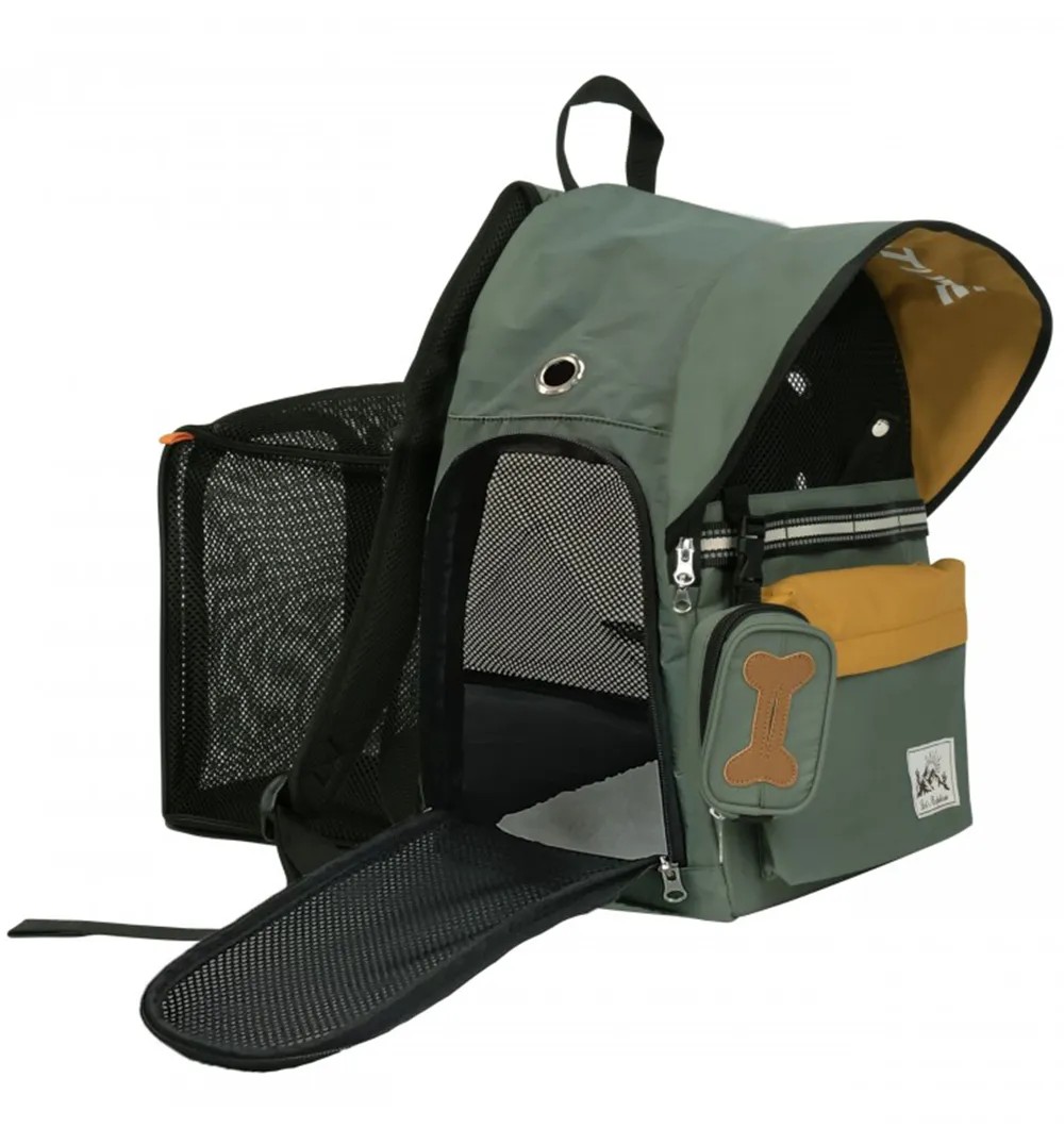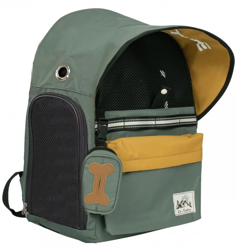 - Integreeritud päikesevari kaitseb koera päikese eest. Koti tagaosa on avatav, et koer saaks vajadusel mugavalt lamada.