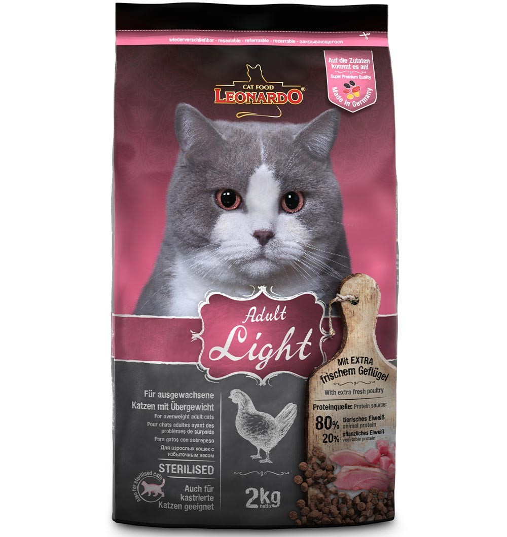 LEONARDO Adult Light kuivtoit aitab kassi kaaluprobleeme ennetada või vähendada ja annab seega olulise panuse kassi tervisesse!