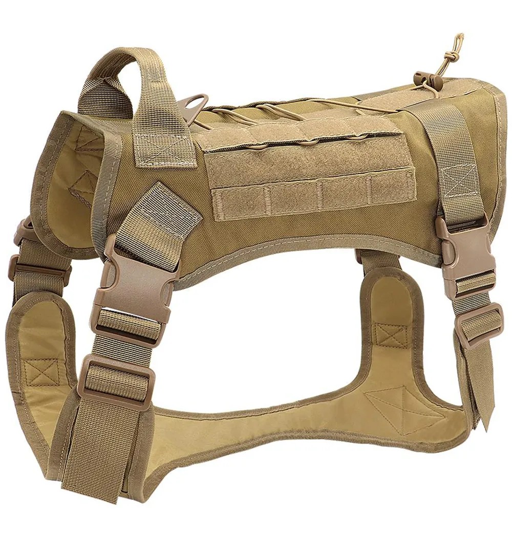 • MOLLE (Modular Lightweight Load-Carrying Equipment) süsteem annab võimaluse kinnitada erinevaid taskuid ja aksessuaare, muutes varustuse koera järgi kohandamise lihtsaks.