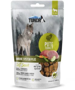 Kalkuniliha 80% (sealhulgas värske kalkuniliha 50%; kalkuniliha kuivatatud, jahvatatud 30%), bataat*, porgand*, herned*, õuna viljaliha*, spiruliina*, aroonia*, jõhvikad*, petersell*, naatriumkloriid. (*kuivatatud)